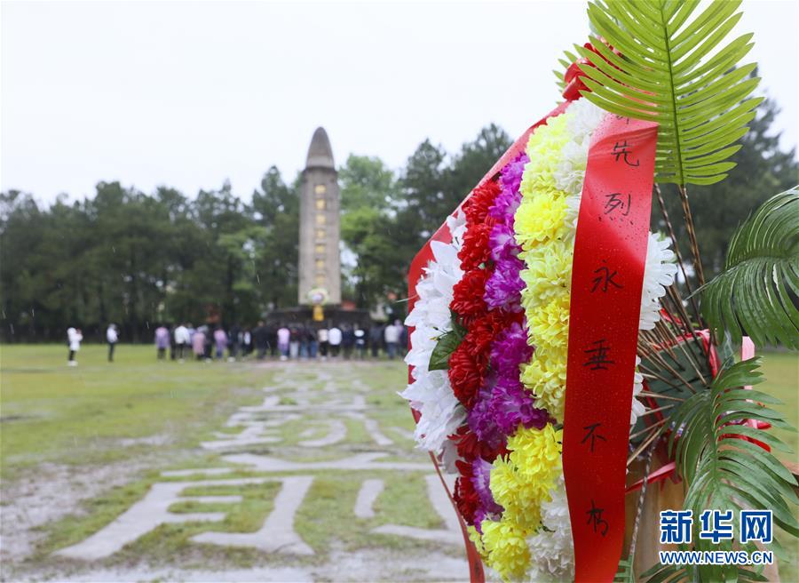 游客在江西瑞金市叶坪红色旅游景区内瞻仰红军烈士纪念塔(5月6日摄)。 新华社记者 兰红光摄