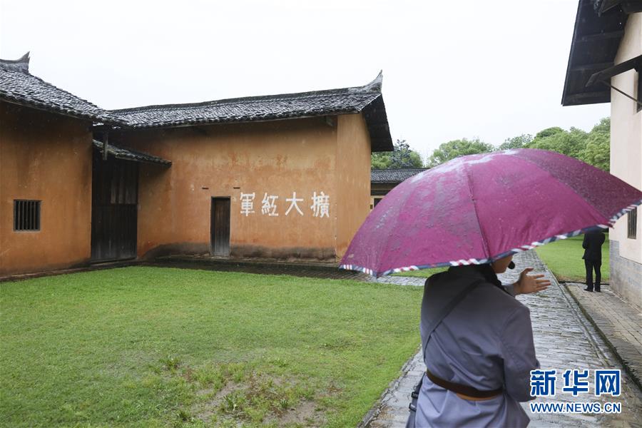 一位讲解员在引导游客参观江西瑞金市叶坪红色旅游景区(5月6日摄)。 新华社记者 兰红光摄