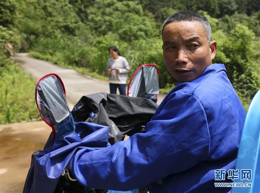 江西瑞金市大柏地乡村民杨海生驾驶农用车出行。在当地政府的帮助下,他的日子越过越红火(5月7日摄)。 新华社记者 兰红光摄