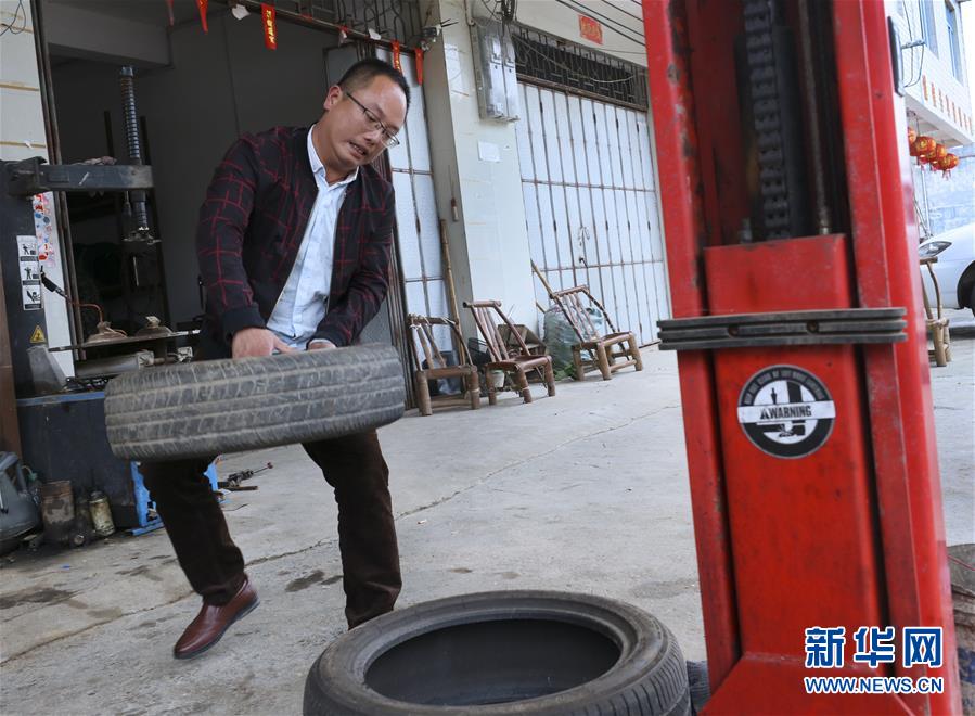 江西瑞金市大柏地乡村民郑冬林在自己的汽配店内工作。郑冬林一家曾是建档立卡贫困户,当地政府为其提供了5000元的产业奖补资金和8万元的免息贷款。利用大柏地乡靠近国道的优势,他靠着政府的帮助和所学的技术,生活条件得到改善(5月7日摄)。 新华社记者 兰红光摄