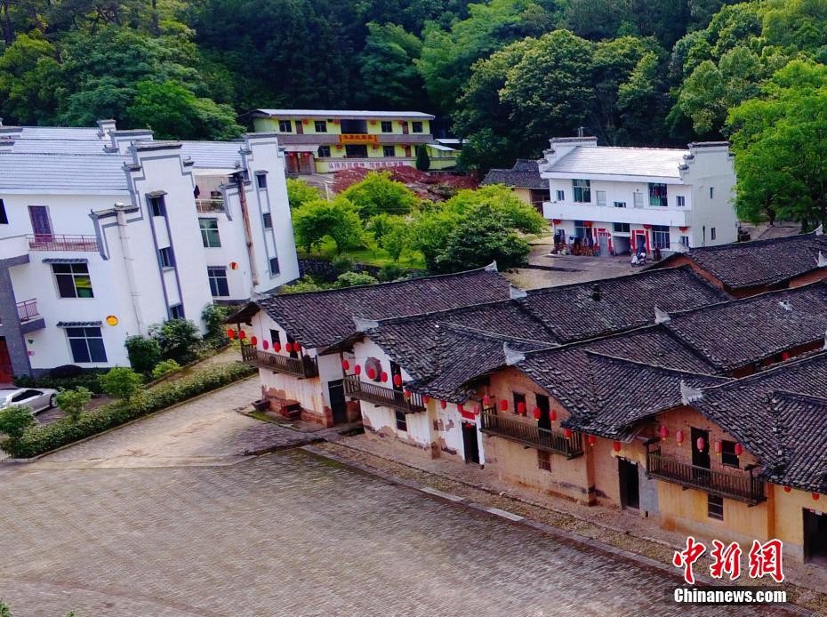 5月23日,无人机航拍江西瑞金市叶坪乡黄沙村华屋新貌,一栋栋新式三层小洋楼鳞次栉比,一路之隔的一间间饱经风霜的破旧土坯房也静静伫立。新旧对比,见证了华屋村的巨变。坐落于绿水青山中的华屋村,曾是一个贫困落后的小村落。在实施苏区振兴和精准扶贫后,这里的村庄发生了翻天覆地的变化,不仅新修建了公路和住房,并统一规划建设了大规模的蔬果大棚,成为远近闻名的乡村旅游点。中新社记者 刘占昆 摄