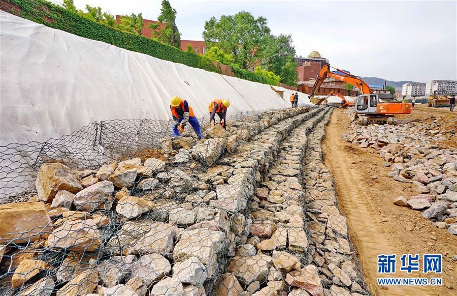 5月24日,工人在迁安市西沙河综合治理工程工地施工(无人机拍摄)。新华社记者杨世尧摄