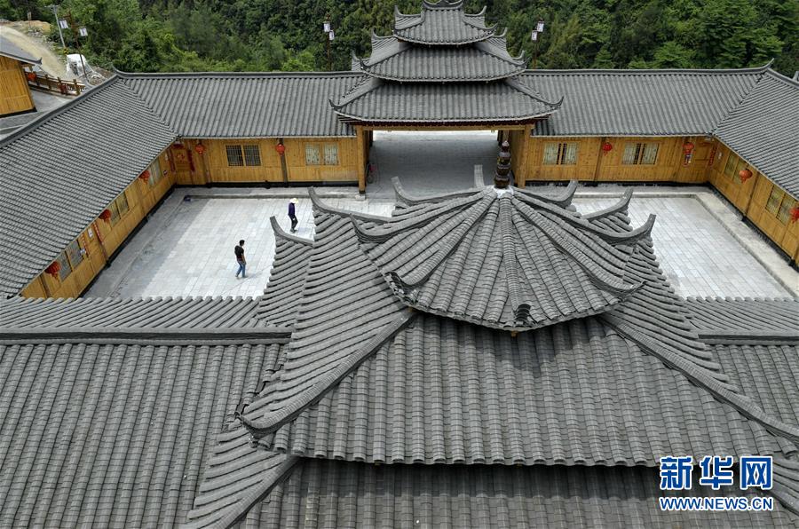 5月24日,搬迁农民走在崭新的“侗族大院”里。 新华社发(宋文 摄)