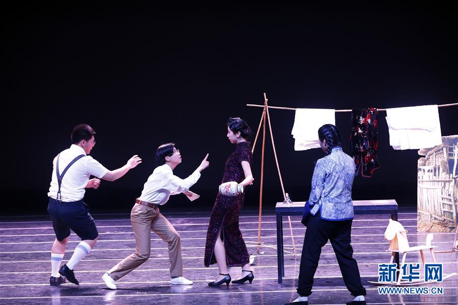 5月24日,中学生在戏剧节上表演名著《三块钱国币》。 当日,北京市第五中学“金色五月,梦想舞台”第十七届中文戏剧节在东城区图书馆拉开帷幕。同学们将中外经典剧目呈现在舞台上,为观众带来一场美妙的视听盛宴。 新华社发(周良 摄)
