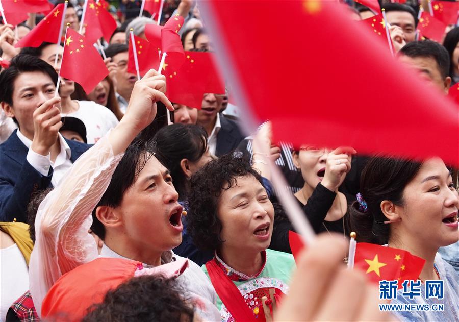 5月26日,文艺界人士在上海再现当年市民欢庆上海解放时的场景。 当日,在上海南京东路步行街世纪广场,来自上海文艺界的百余名艺术家和演员重现中国人民解放军解放上海露宿街头的感人一幕,以纪念上海解放70周年。 新华社记者任珑摄