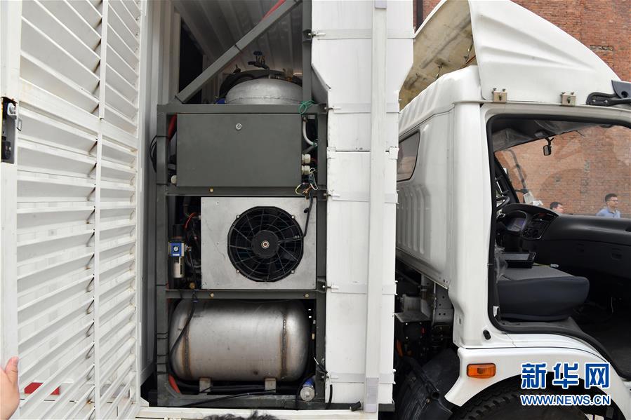 在南阳洛特斯新能源汽车有限公司厂区展示的“水氢发动机车”(5月25日摄)。新华社记者 李嘉南 摄