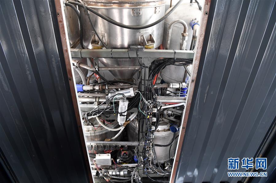 在南阳洛特斯新能源汽车有限公司厂区展示的“水氢发动机车”的“车载水解制氢”系统(5月25日摄)。 新华社记者 李嘉南 摄