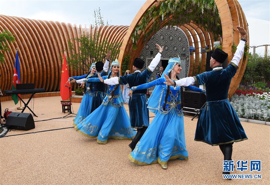 5月26日,演员在“阿塞拜疆国家日”活动中表演。 当日,2019年中国北京世界园艺博览会“阿塞拜疆国家日”活动在北京世园会园区举行。 新华社发(任超摄)