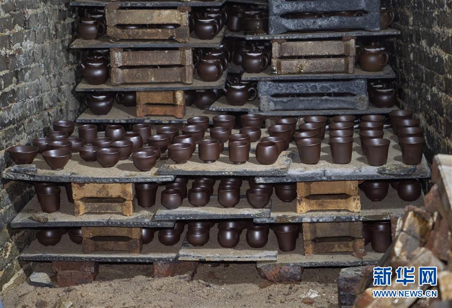 这是5月26日在广西钦州市贵台镇那逻村仿宋朝龙窑拍摄的第117窑坭兴陶制品。 广西钦州市非物质文化遗产传承人施宝业2013年投资300多万元,在钦州市贵台镇那逻村仿制了一座窑体长22米、宽约2米、高1.8米的宋朝龙窑。龙窑是指古代用柴草、松枝烧制陶瓷的土窑,因其形似一条长龙,故名龙窑。贵台龙窑采用松树枝进行烧制,截至2019年5月26日的第117窑,已经烧制了近百万件坭兴陶制品。 新华社记者 才扬 摄