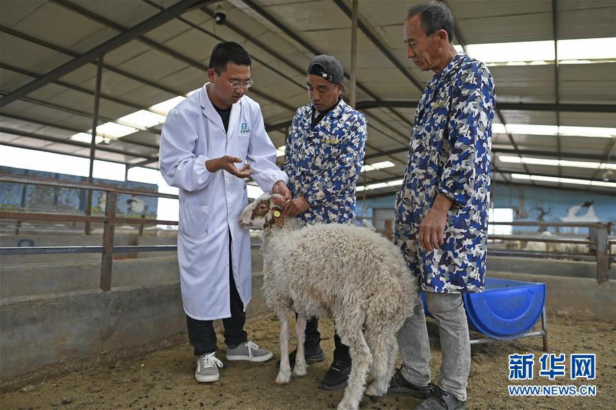 冯欢(左)在羊场向工人介绍疫病防治知识(5月27日摄)。 1990年出生的冯欢是土生土长的宁夏盐池人,2012年从宁夏大学毕业后到北京工作,收入稳定,前景可观。但他一直放不下家里的父母长辈,于2015年10月返乡,通过技术入股加入刚筹建不久的宁鑫生态牧场,饲养滩羊,开始自己的“羊倌梦”。 盐池滩羊羊肉以肉质细嫩、无膻味、脂肪分布均匀、营养丰富等特点深受人们的喜爱。冯欢加入宁鑫生态牧场后,对牧场从跑道建设、羊舍规范化、饲草配方、科学化养殖等方面进行了较大提升。与此同时,牧场吸收周边300多户滩羊养殖户加入,成立产业化联合体,从饲草、免疫、动物用药、销售、品牌建设等方面为养殖户提供全方位服务。养殖户加入后,单只羊纯利润增加80元到130元。目前,宁鑫生态牧场有1100亩地,存栏6000多只羊,2018年收入超过1000万元。 对于未来,冯欢说:“我有一个小目标,就是和志同道合的朋友建立一个农村服务站,在防疫、治疗等方面为农户和养殖户提供技术服务,让家乡百姓走上致富快车道。” 新华社记者 王鹏 摄