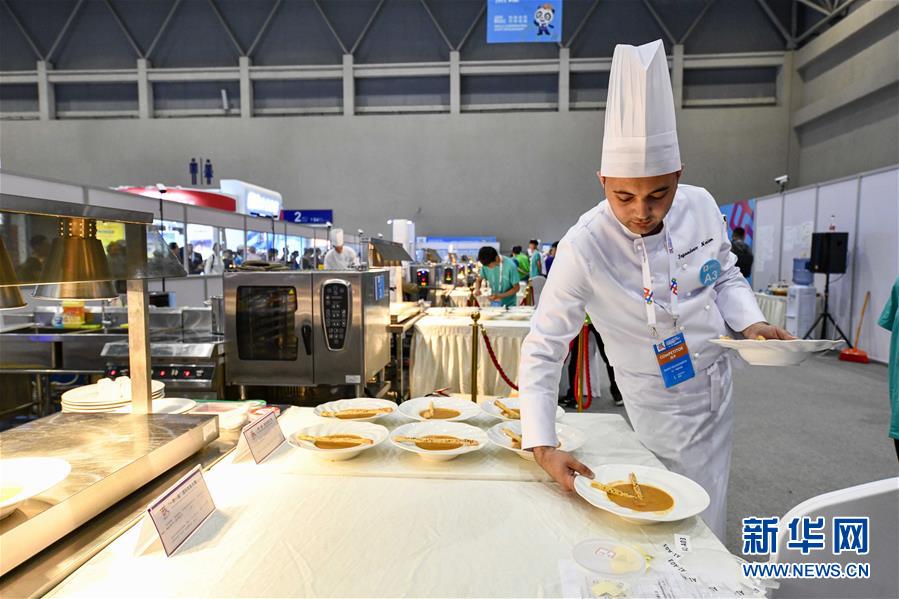 5月28日,选手参加“一带一路”国际技能大赛烹饪项目比赛。 当日,以“技能合作、共同发展”为主题的“一带一路”国际技能大赛在重庆正式开赛,共有44个国家和地区的近700名人员参与,参赛选手在为期两天比赛中参与18个项目的技能竞赛,中国代表团派出18名选手参加全部18个比赛项目。 新华社记者 刘潺 摄