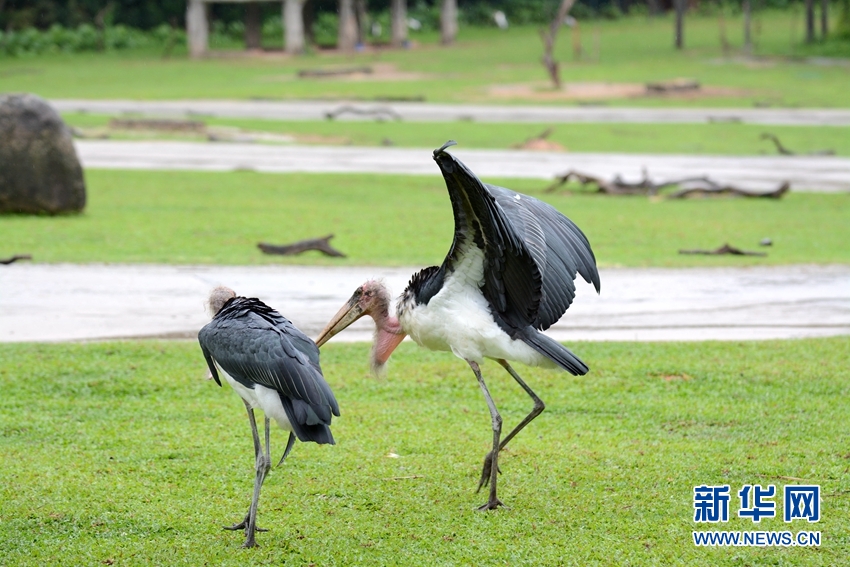 两只秃鹳在漫步。新华网发(许建梅摄)