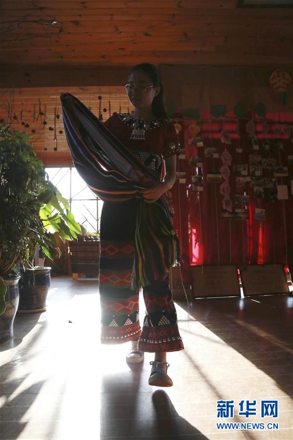 5月28日,一名佤族妇女在勐梭镇秧洛村的“西盟印象”民族手工服饰体验馆里。 云南省普洱市西盟佤族自治县民族织锦以“传承民族文化,弘扬多彩佤山”为特色,主要以手工纺织为主,包括民族服饰、披肩、毯子等,产品远销国内外。该县勐梭镇秧洛村带动传统村寨发展民族手工经济,当地政府支持的“西盟印象”民族手工服饰体验馆为村民提供传统手工纺织创意设计和加工等技能培训,帮助佤族村民就业增收。 新华社记者 薛东梅 摄