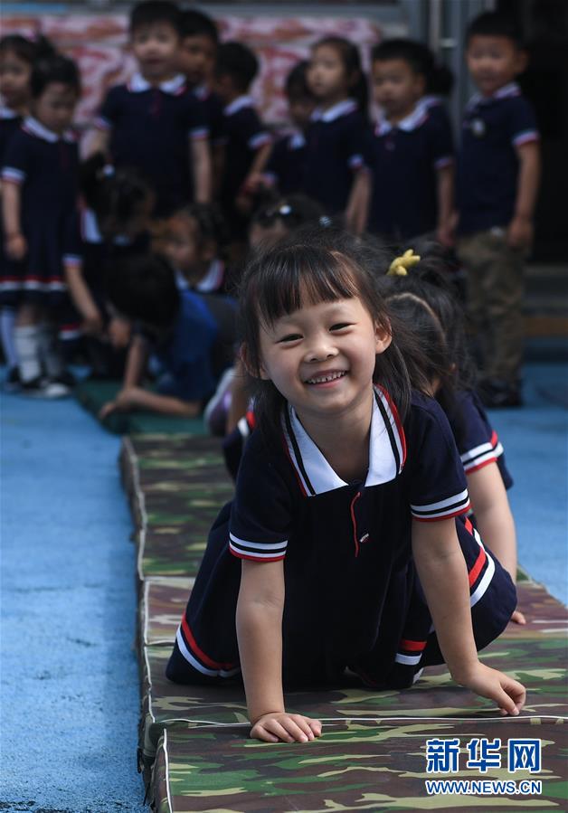5月29日,孩子们在参加趣味拓展游戏。 当日,浙江省长兴县李家巷镇中心幼儿园举行“奔跑吧,萌娃”趣味拓展游戏活动,迎接即将到来的“六一”儿童节。 新华社记者 徐昱 摄