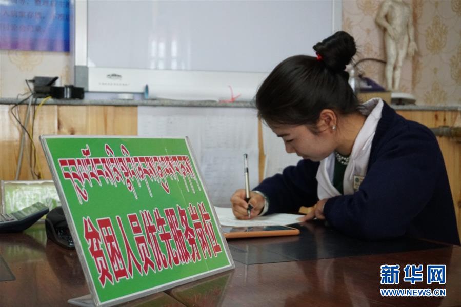 护士卡卓措在办公室填写患者基本信息(5月21日摄)。新华社记者央秀达珍摄