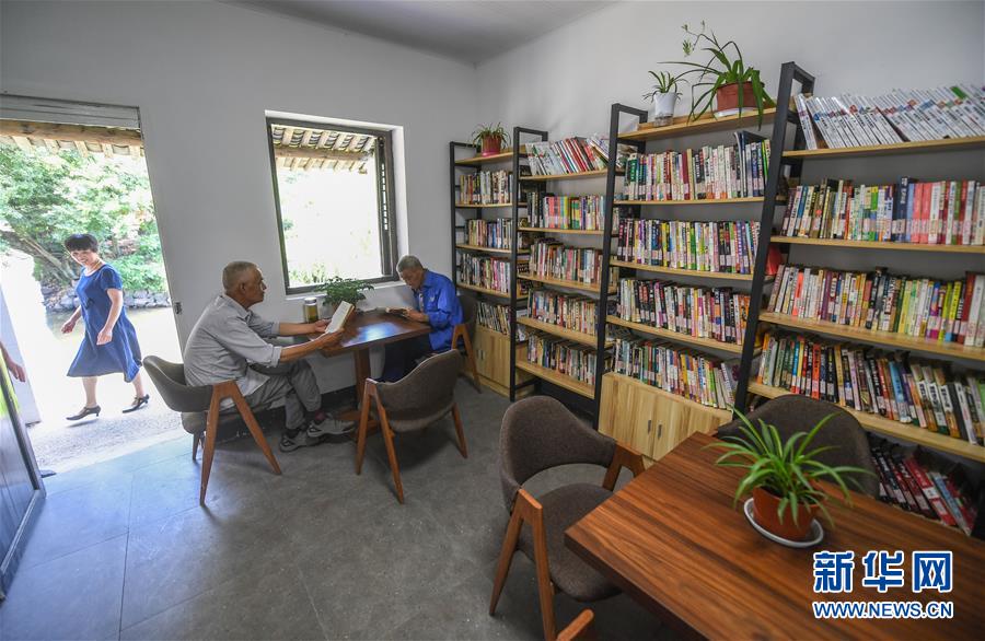 5月29日,潞村村民在由老房子改建的活动室“微书房”里看书休憩。新华社记者 徐昱 摄