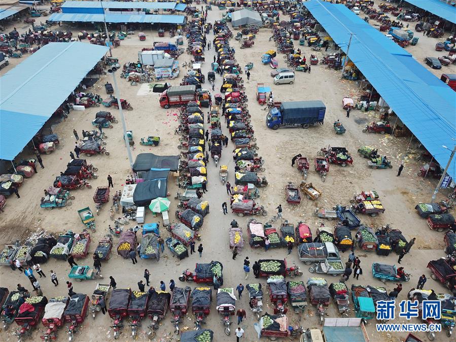 5月30日拍摄的莘县燕店镇香瓜市场(无人机拍摄)。 山东省聊城市莘县是“中国香瓜之乡”。莘县香瓜香甜爽口,不仅赢得顾客的青睐,也为广大瓜农带来可观收入。 新华社记者 才扬 摄