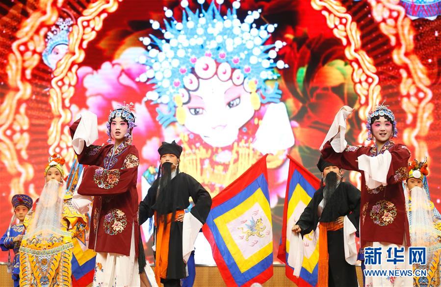 5月30日,山东青岛通济实验学校的学生在校园京剧艺术节上表演京剧《穆桂英挂帅》。 为弘扬中国传统文化,山东青岛通济实验学校从2018年9月开始,将京剧艺术教育列入该校课程,成立校园京剧社团,聘请青岛京剧院的专业老师来校为孩子们授课。学校还定期举办京剧艺术节,既丰富了学生的课余文化生活,又让他们近距离感受国粹的魅力。 新华社发(梁孝鹏 摄)