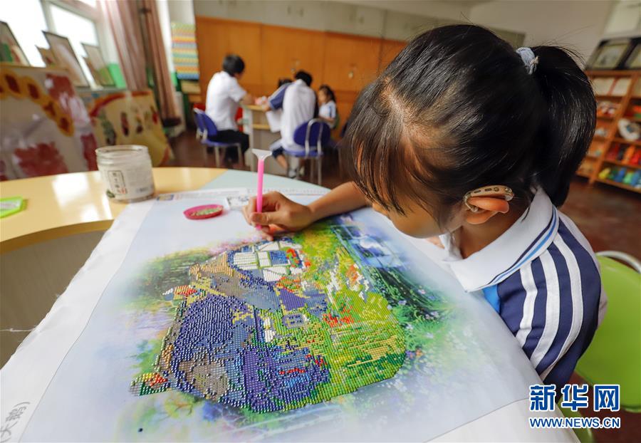 5月30,河北唐山遵化市特教学校的学生在制作手工画,为 “六一”国际儿童节的展出做准备。 新华社发(刘满仓 摄)