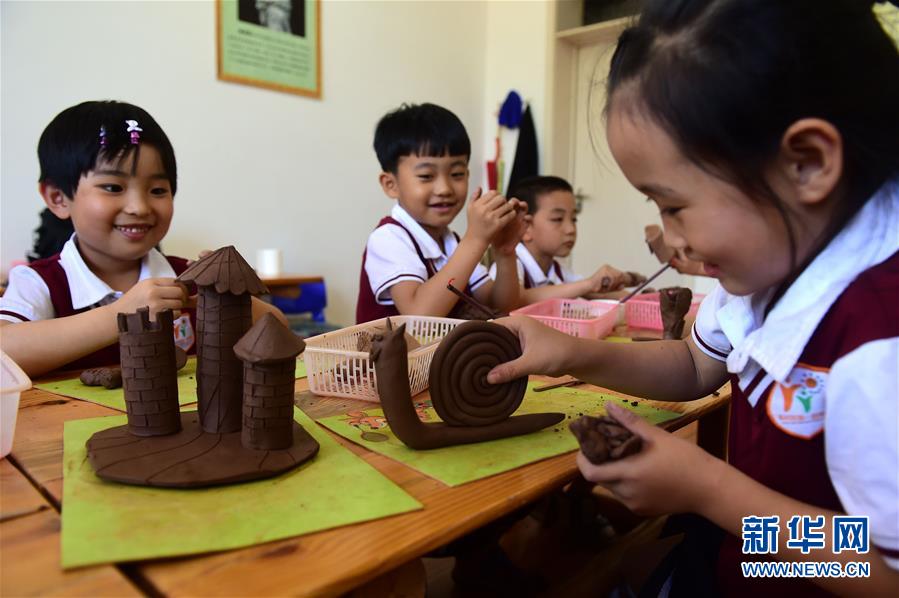 5月30日,河北沧州孟村回族自治县第一幼儿园举行“迎‘六一’泥塑制作比赛”主题活动,小朋友们在老师的指导下进行泥塑创作,体验动手的乐趣。 新华社发(傅新春 摄)