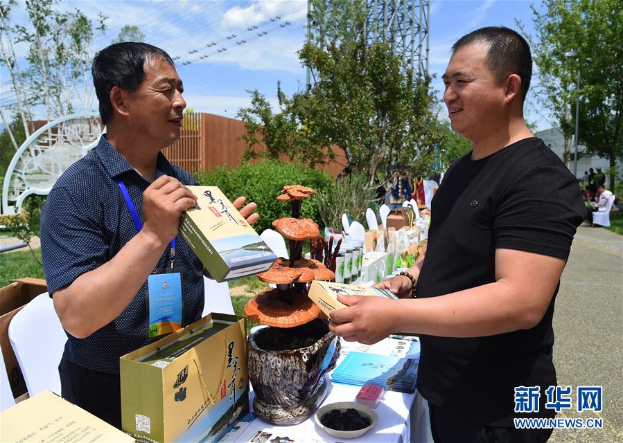 5月30日,在“黑龙江日”活动特色农产品展示中,游客与工作人员交流。