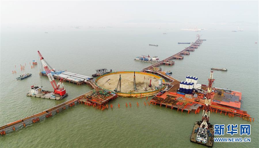 这是深中通道伶仃洋大桥东锚碇围堰施工现场(4月25日无人机拍摄)。深中通道是继港珠澳大桥之后的又一超级工程,它全长24公里,集“隧、岛、桥、水下互通”四位一体,连接深圳市和中山市。