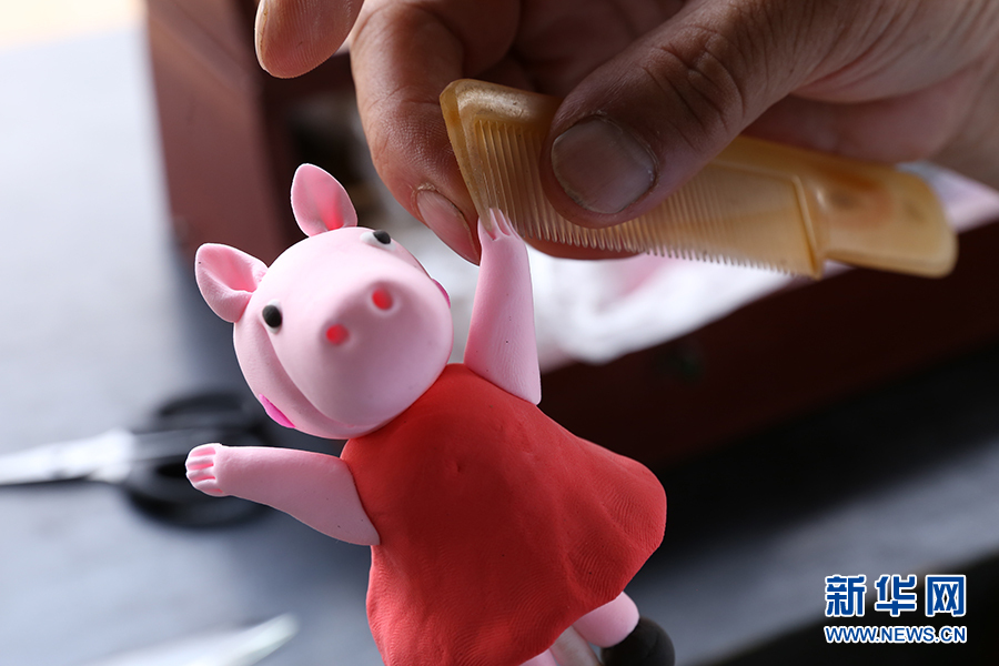 吴应德用梳子刻出小猪佩奇的手。新华网 潘越 摄