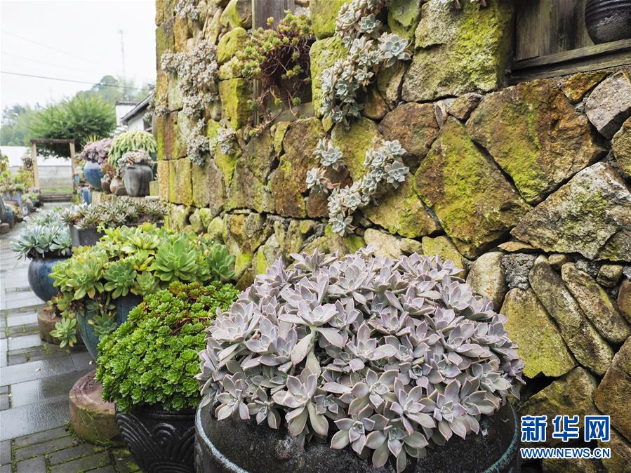 这是东坑镇深垟村村民自家种植的多肉植物(5月31日摄)。 浙江省丽水市景宁畲族自治县东坑镇深垟村有“石寨”的美誉,当地传统民居多为石头堆垒而成。近年来,当地推广多肉植物,在石墙和民居庭院大面积种植,扮靓乡村景色的同时,也增加了村民收入。 新华社发(李肃人 摄)