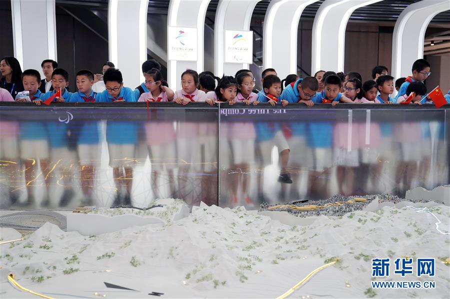 6月1日,北京市石景山区电厂路小学的学生在北京冬奥会和冬残奥会展示中心内参观场馆沙盘。新华社记者鞠焕宗摄