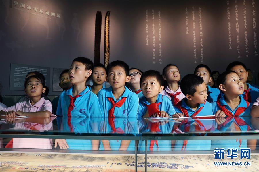 6月1日,北京市石景山区电厂路小学的学生在北京冬奥会和冬残奥会展示中心内参观。新华社记者鞠焕宗摄