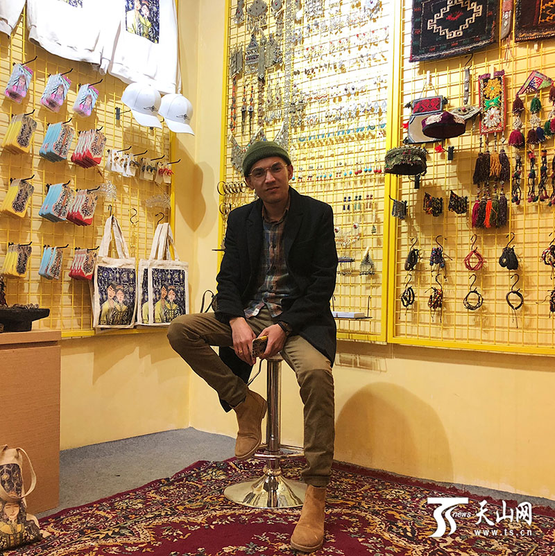 天山网讯(记者王晶晶报道)5月28日,喀什老城景区里,姜黄色墙体和宝蓝色木门的后面,一个戴金丝边眼镜、穿卫衣的年轻人正在文创店里忙碌着,他看上去很时髦,但他说自己的工作和时尚没关系,他的主业是——复古。这个小伙子叫麦吾兰·图拉克,他的文创店里摆着200多件比他年长很多的手工艺饰品和服装,25岁的他对这些物件的名字、用法、来历如数家珍。
