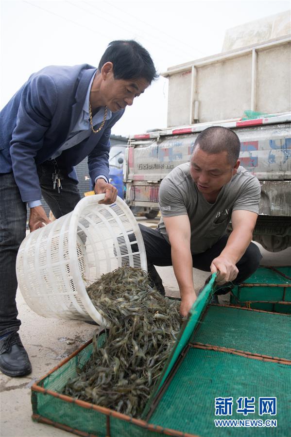 6月1日,道场乡施家桥村虾农(左)将刚捕捞的青虾贩售给客商。新华社记者 翁忻旸 摄