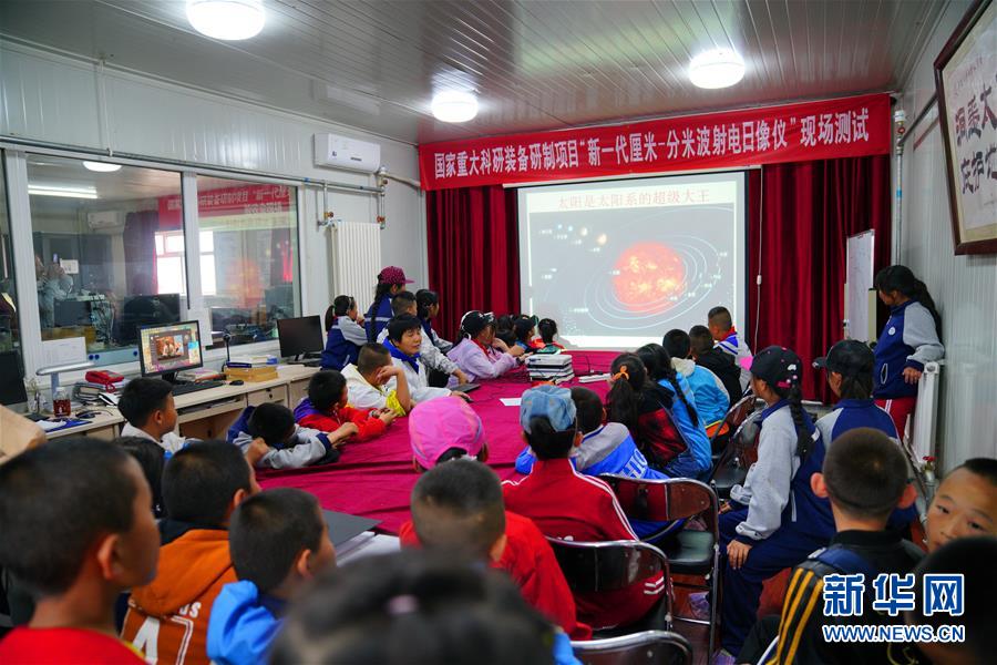 6月1日,国家天文台明安图观测基地科研人员为孩子们讲解太阳的知识。 新华社发(杨子建 摄)