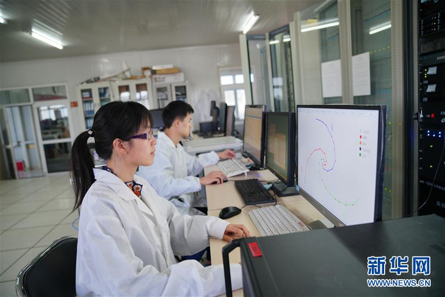 国家天文台明安图观测基地工作人员查看设备运行情况(5月31日摄)。 新华社发(杨子建 摄)
