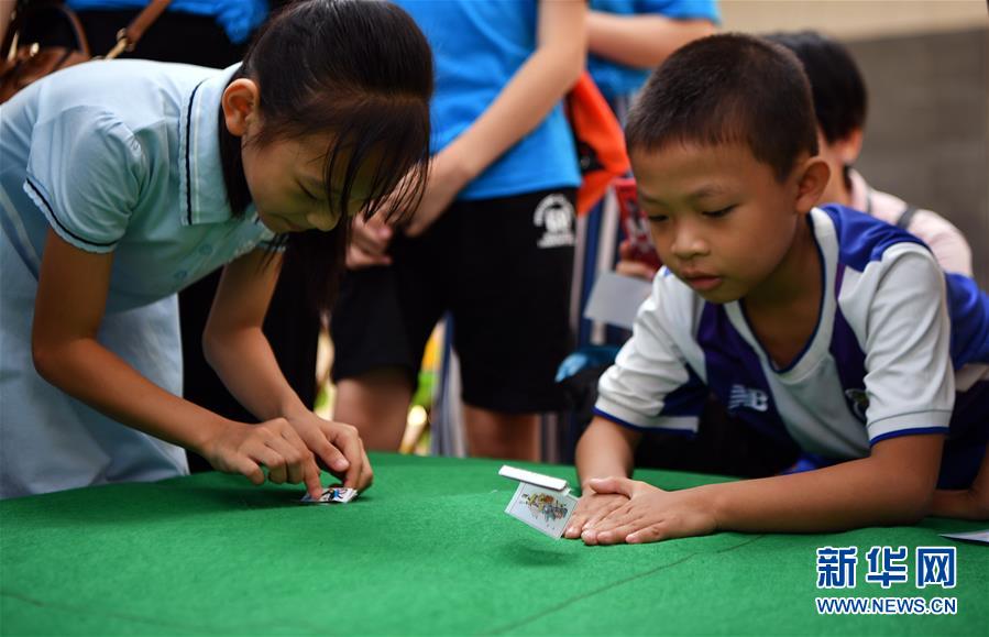 6月1日,小朋友在海南省博物馆拍画片。新华社记者 郭程 摄