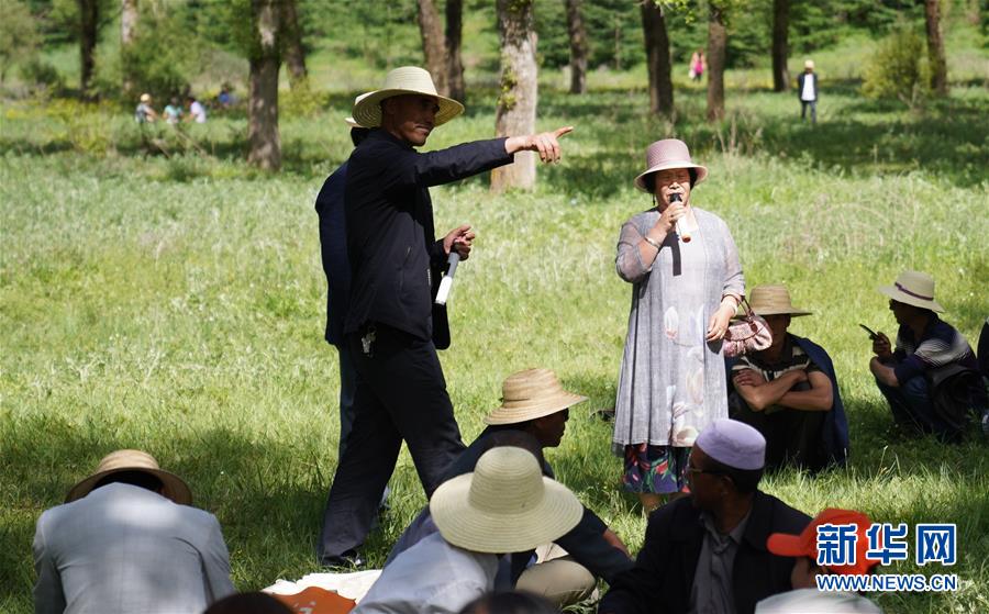 6月1日,参加松鸣岩花儿会的群众在演唱花儿。新华社发(李梦馨 摄)