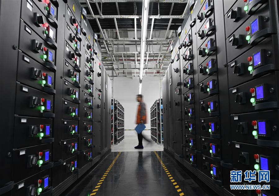 工作人员在宁夏中卫市西部云基地中国移动宁夏数据中心对设备进行检查维护(5月31日摄)。