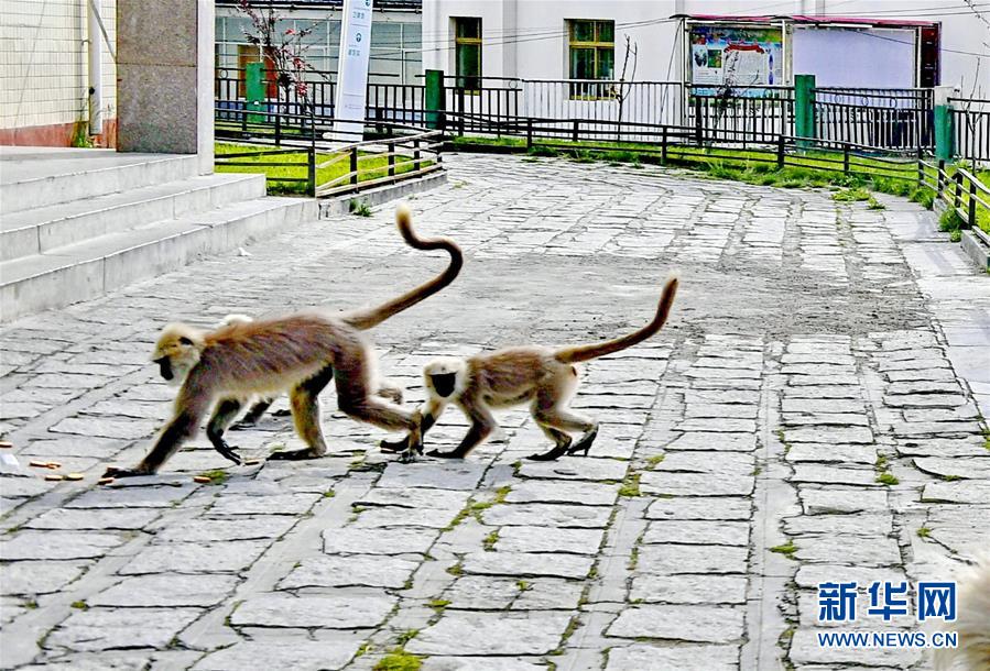 这是在亚东县城拍摄的两只长尾叶猴(5月31日摄)。