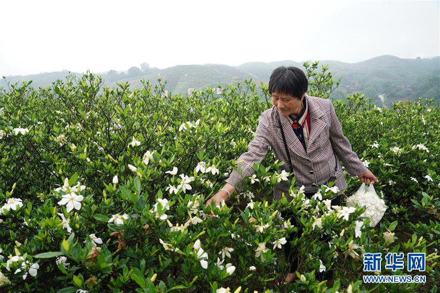 6月2日,一名农民在福鼎市贯岭镇茗洋村的栀子园采摘可食用的栀子花。