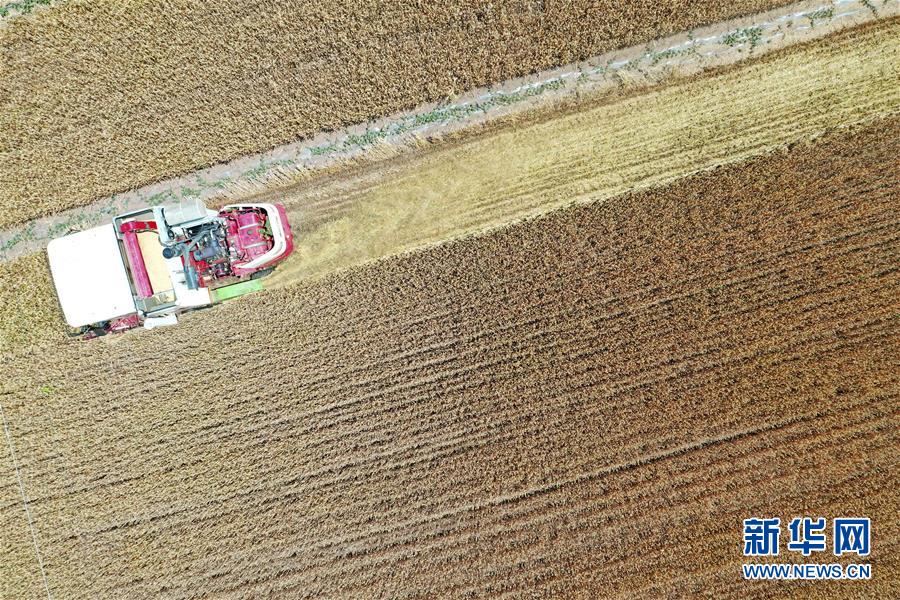 6月2日,在安徽省亳州市谯城区十河镇褚刘村,村民在田间抢收小麦。