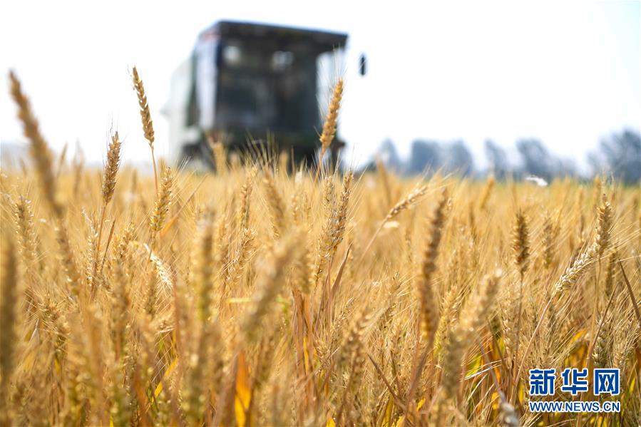 6月2日,在安徽省亳州市谯城区赵桥乡赵桥村,村民在田间收割小麦。