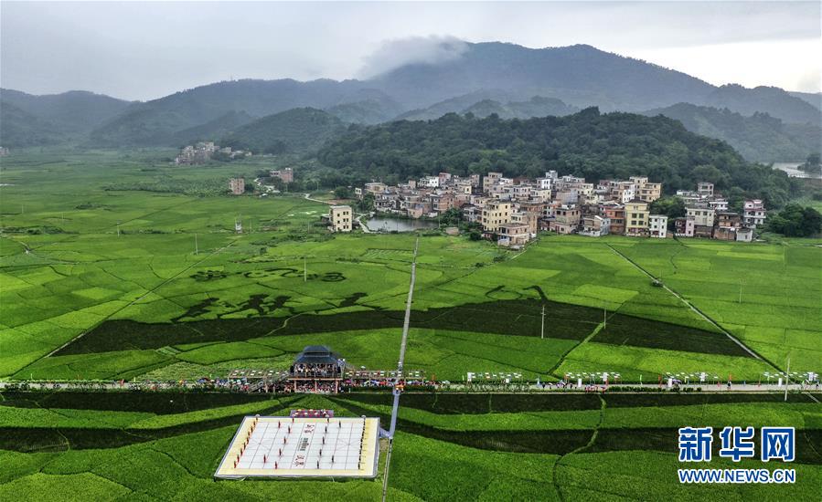6月2日,小学生们在稻田里的“大地棋盘”上举行一场别开生面的象棋博弈(无人机拍摄)。