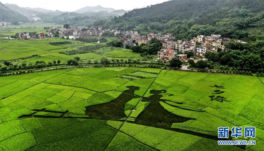 6月2日无人机拍摄的“七夕缘”稻田画。