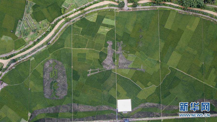 6月2日无人机拍摄的“七夕缘”稻田画。