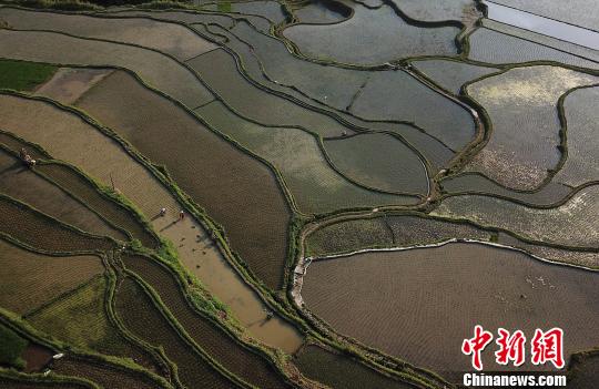 图为6月2日,农民在梯田里插秧。 黄晓海 摄