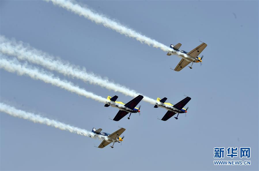 6月3日,在第十一届安阳航空运动文化旅游节开幕式上,航空爱好者在进行特技飞行表演。 新华社记者 李嘉南 摄
