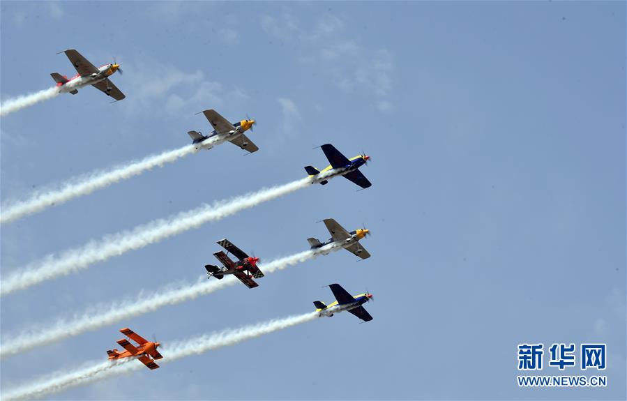 6月3日,在第十一届安阳航空运动文化旅游节开幕式上,航空爱好者在进行特技飞行表演。 新华社记者 李嘉南 摄