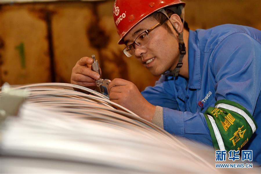 质检人员在检验“笔尖钢”钢丝的质量情况(2017年1月10日摄)。 作为不锈钢行业的领军企业,太钢集团潜心打造不可缺少、无可替代的高端精品,在毫厘之间下足“绣花功夫”。从“手撕钢”到“笔尖钢”,再到碳纤维,瞄准“高、精、尖、缺”,在最薄、最轻、最硬、最特殊的产品性能上展开竞争,把成为全球行业领军者、创新领跑者作为高质量发展的目标。 目前,太钢拥有以不锈钢为核心的系列专有技术、授权专利2700多件,其中发明专利772件,主持制定了我国不锈钢产业70%的国家标准,产品通过了系列国际标准认证,拥有向全球市场供货的通行证。 新华社记者 曹阳 摄