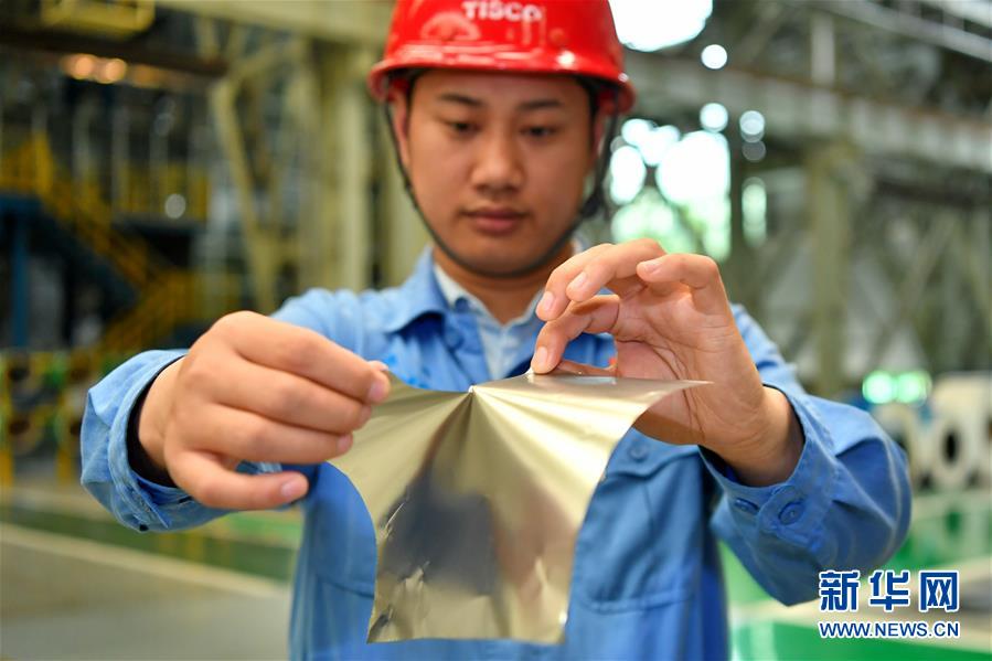 太钢集团员工在展示用手撕开0.02毫米厚的超薄带状不锈钢(5月24日摄)。 作为不锈钢行业的领军企业,太钢集团潜心打造不可缺少、无可替代的高端精品,在毫厘之间下足“绣花功夫”。从“手撕钢”到“笔尖钢”,再到碳纤维,瞄准“高、精、尖、缺”,在最薄、最轻、最硬、最特殊的产品性能上展开竞争,把成为全球行业领军者、创新领跑者作为高质量发展的目标。 目前,太钢拥有以不锈钢为核心的系列专有技术、授权专利2700多件,其中发明专利772件,主持制定了我国不锈钢产业70%的国家标准,产品通过了系列国际标准认证,拥有向全球市场供货的通行证。 新华社记者 曹阳 摄