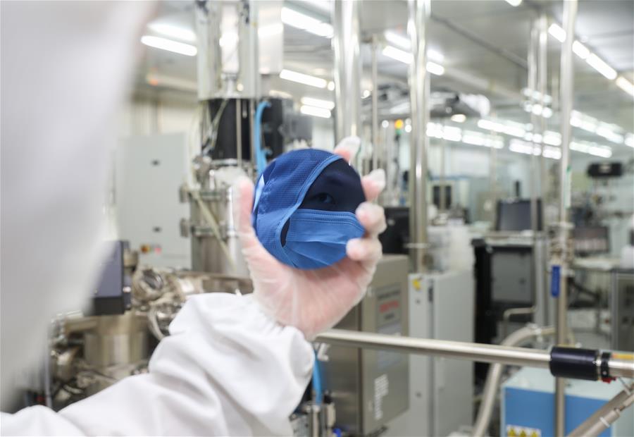 6月3日,复旦大学微电子学院教授张卫、周鹏团队成员刘春森在实验室内观察硅片表面。 新华社记者 丁汀摄